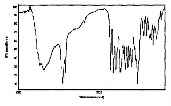 精確稱取0.100g的溴化鉀,壓片測紅外作為背景,再精確稱取0.100g的溴化鉀,加入極少量樣品一起研成細粉,壓片,測紅外吸收圖譜。