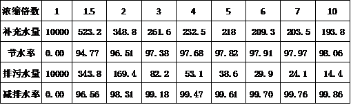 表 1:不同濃縮倍數(shù)下的補(bǔ)水率、減排水率