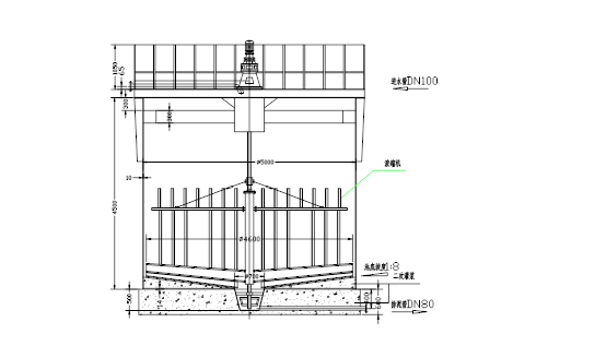 濃縮池沉淀下來的泥,由刮板從四周向中心收集,然后進入集泥斗。由排泥管排出濃縮池。刮臂上安裝的刮板與刮臂成45度角,兩片重合15度角左右,這樣的結構利用集泥。