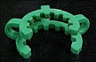 3.使用金屬或Keck夾固定燒瓶和緩沖阱。下圖所示的綠色適用于24/40毛玻璃接頭。類似的藍色夾子適合19/22關節,而黃色夾子適合14/20關節,這很可能在實驗室中使用。如果您突破顛簸陷阱,則必須為此付出代價!