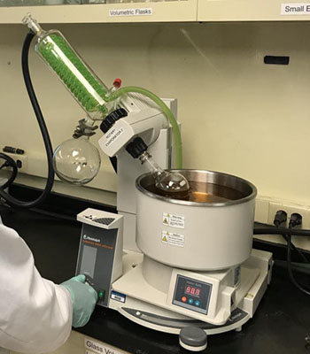 與上述同時進行,將燒瓶放入熱水浴中并連續(xù)旋轉(zhuǎn)。這會在燒瓶內(nèi)部形成薄膜,從而增加表面積,氣體分子可以從該表面積蒸發(fā)。它還可以將熱量直接傳導到系統(tǒng)中,因此即使分子蒸發(fā)掉,溫度也保持恒定。